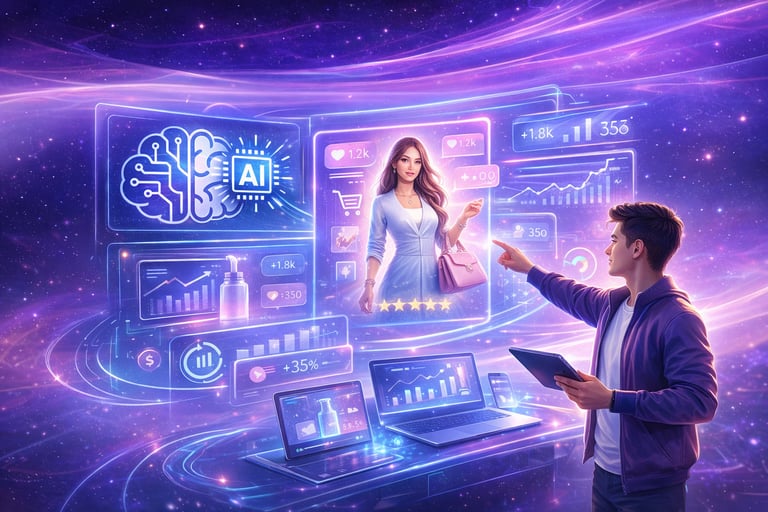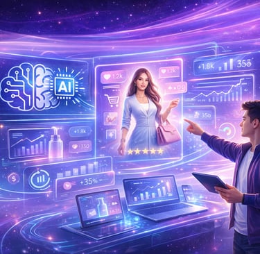Transformamos produtos em experiências visuais de alto impacto, utilizando tecnologia de inteligência artificial para gerar imagens e vídeos realistas, sem estúdios, sem modelos reais e sem os custos e limitações da produção tradicional.